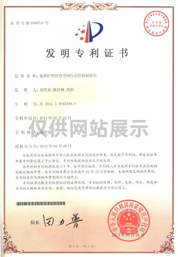 加熱爐豎管內空間臺式管程輻射室